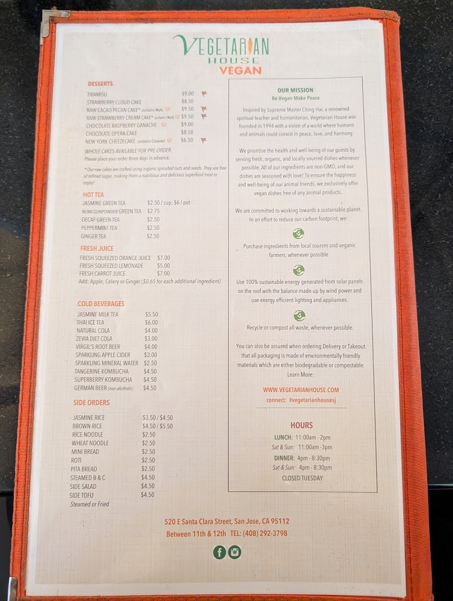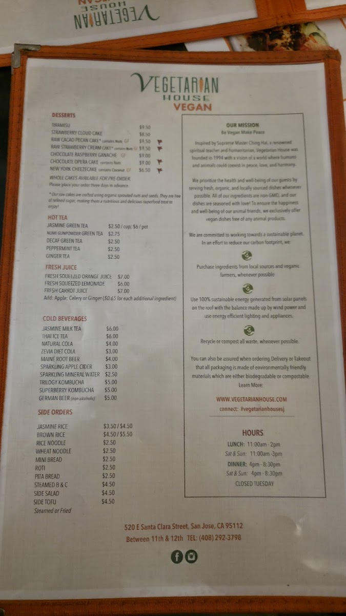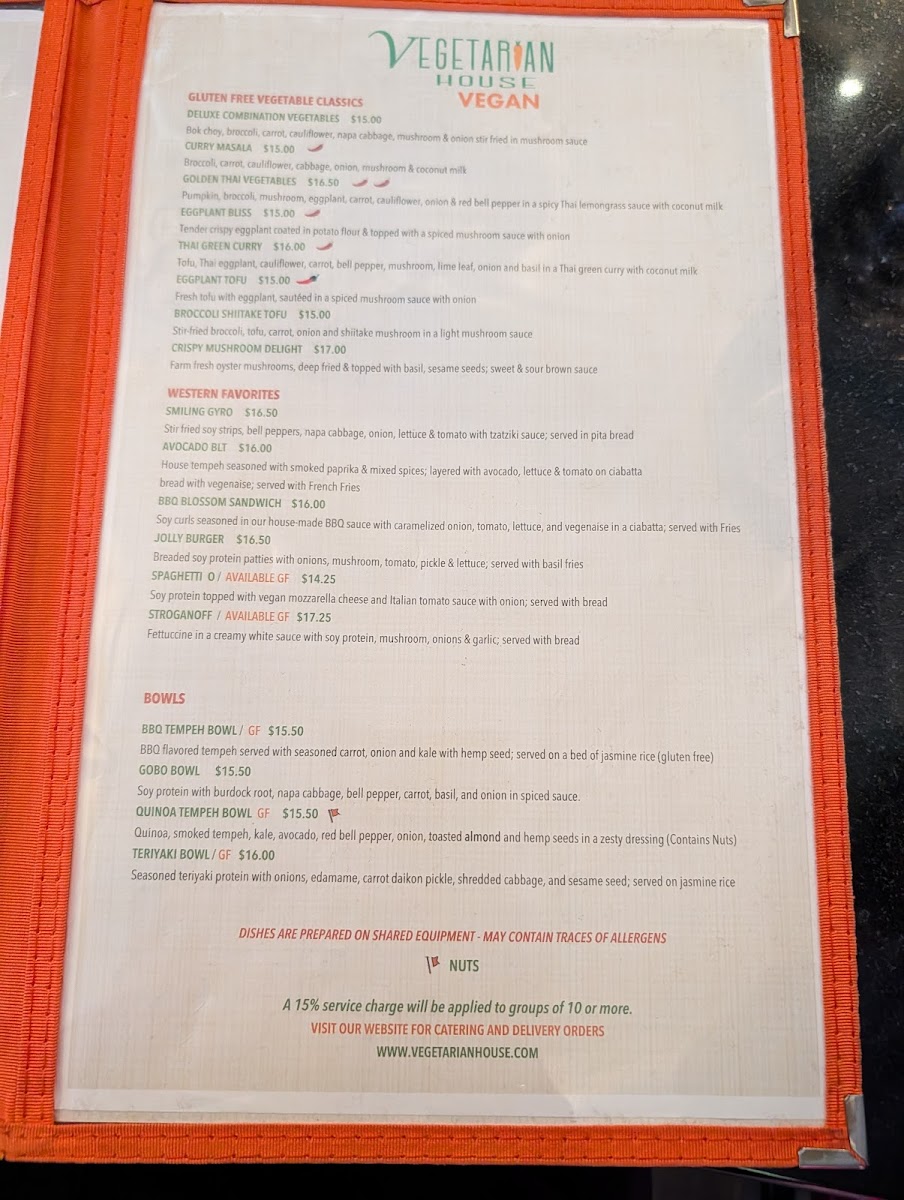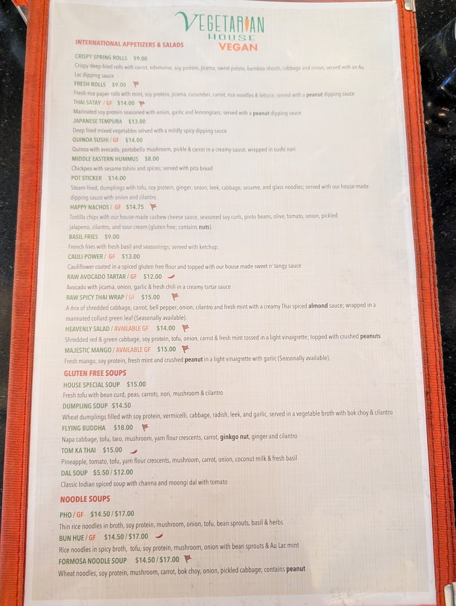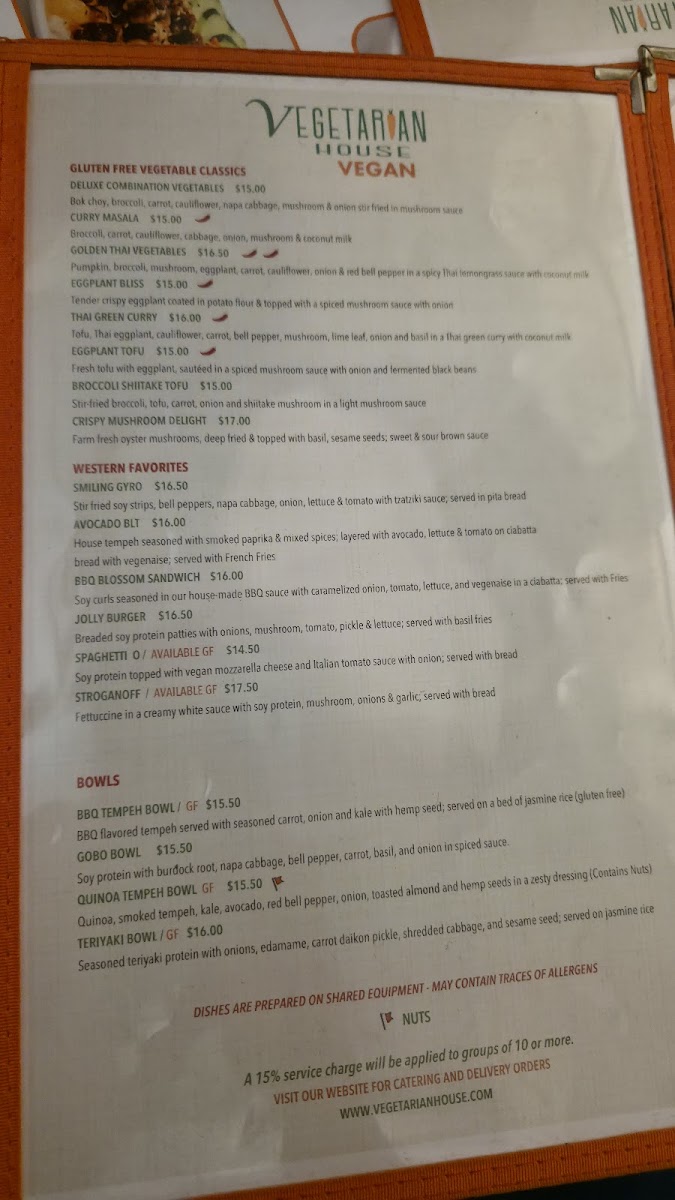 The menu is suitable for casual dining and takeout, with weekend dine-in service and weekday takeout availability. The range of items supports various meal occasions from light bites and appetizers to main courses, appealing to those seeking plant-based Asian fusion cuisine with gluten-free options.